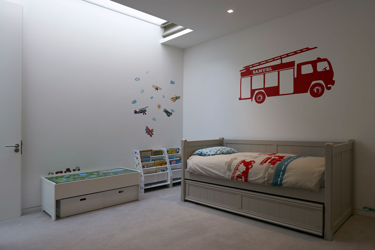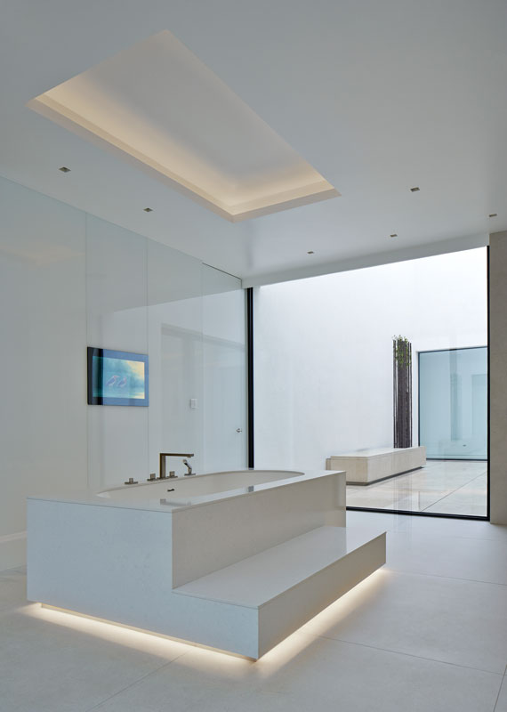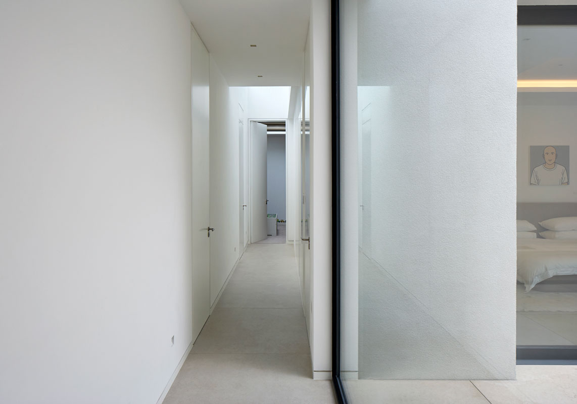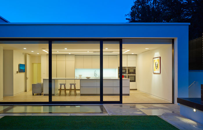 The 420 sq m (circa 4,500 sq ft) property is arranged over two storeys, one being largely buried into the earth, to respect the intimacy and privacy of the site. The design is composed simply of three, distinct orthogonal elements arranged around a series of external courtyards intimately associated with each.